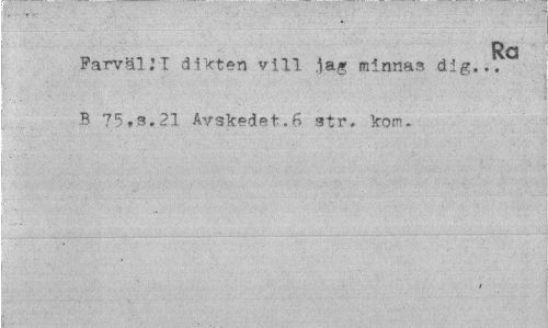 //// Ra //// FarvälM dikten vill .lag minnas dig... B 75,s,21 Avskedet.6 atr. kon- ////