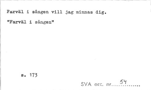 //// Farväl i sången vill jag minnas dig. "Farväl i sången" //// s. 173 //// SVA aec. nr... ////