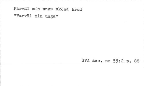 //// Farväl min unga sköna brud "Farväl min unga" //// SVA acc. nr 53:2 p. 88 ////