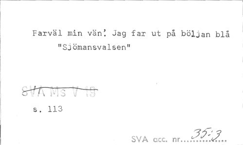 //// Farväl min vän'. Jag far ut på böljan blå //// "Sjömansvalsen" ! ---— //// CJ 1 \ H O v v //// s. 113 //// SVA cscc. ////