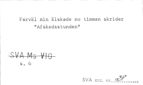 //// Farväl min älskade nu timman skrider "Afskedsstunden" //// SVA Ms-¥f9- //// s, 6 //// SVA ccc. m... ////