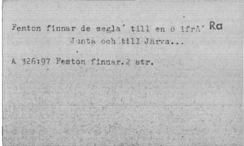 //// Femton finnar de segla' till en ö ifrå' Janta och fcill Järva... //// A. 326:97 Femton finnar. 2 str. ////