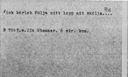 //// Ra : //// £liok kärlek följa sitt lopp att skölja,... B 70:3,9.224 Stanzer. 6 str. kom. //// . ¦ > ' U*. ... .. . — ////