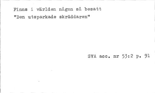 //// Finns i världen någon så besatt "Den utsparkade skräddaren" //// SVA acc. nr 55:2 p. 91 ////