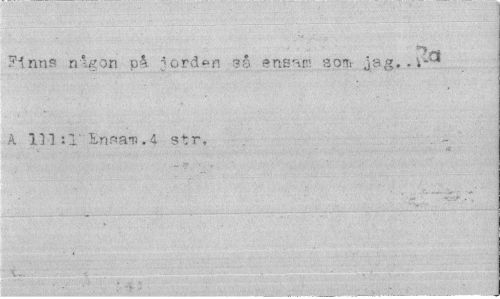 //// Finns någon på. jorden ?å ensam son> jag.-»* å IM.:!"Ensati.4 str. ////