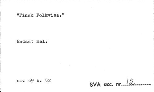 //// "Finsk Folkvisa." //// Endast mel. //// nr. 69 s. 52 /9 //// SVA acc. nr../.iw... ////
