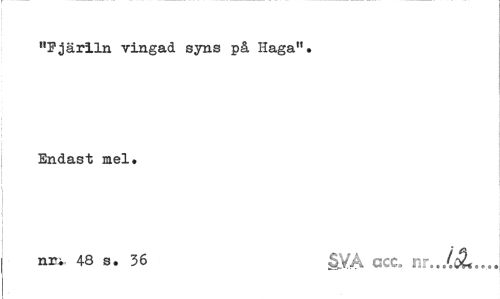 //// "Fjärlln vingad syns på Haga". Endast mel. //// nri 48 s. 36 SYA ecc3 nr ////