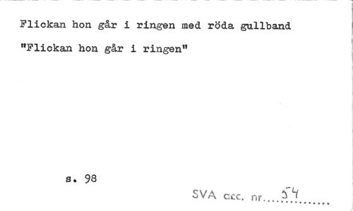 //// Flickan hon går i ringen med röda gallband "Flickan hon går i ringen" //// s. 98 //// SVA ccc. ... ////