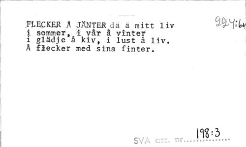 //// FLECKER .A JÄNTER da ä mitt liv ¦ //// i sommer,oi vår å vinter i glädje å kiv, i lust å liv. Å flecker med sina finter. //// SVA c: nr... ////