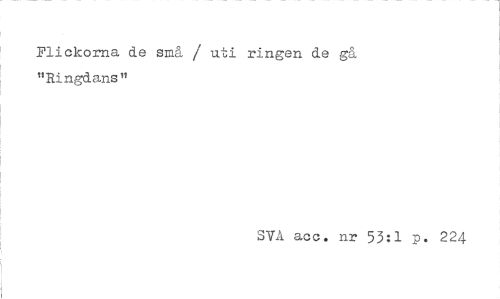 //// Flickorna de små / uti ringen de gå "Ringdans" //// 3Yå acc. nr 53:1 p. 224 ////