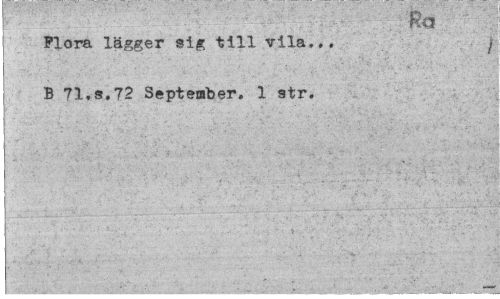 //// ¦Ro //// Plora lägger sig till vila.., j //// B 71,s.72 September. 1 str. //// ¦ ¦ //// — ////