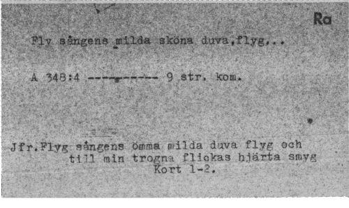 //// • "... ... .'i Fly sångens milda sköna duva,flyg... //// A 348:4 ---r---g str, ^ //// Jfr.Flyg sångens ömma milda duva flyg och //// till min trogna flickas hjärta smy* ' £ort 1-2. G ////