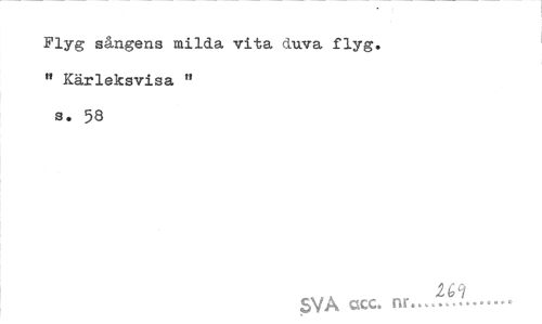 //// Flyg sångens milda vita duva flyg. " Kärleksvisa " s. 58 //// SVA ccc. nr...—— ////