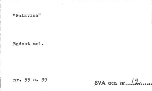 //// "Folkvisa" //// Endast mel. //// nr. 53 s. 39 e./A j t) //// SVA ccc. nr...'.^4<... ////