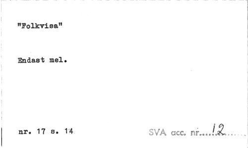 //// "Folkvisa" //// Endast mel. //// i //// nr- 17 s * 14 SVA acc. nr...LZ... ////