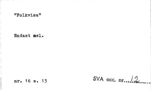 //// "Folkvisa" //// Endast mel. //// nr. 16 b. 13 SVA Qcc- nT..J.&... ////