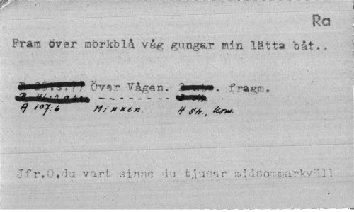 //// Ra //// Fram över mörkblå våg gungar min lätta båt.» //// ÄwW^W*'Över Vågen. iiy. fragm. *** VM., As» //// Jfr.O,du vart sinne du tjusar raidso-r-markv!"il ////