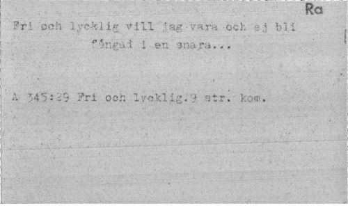 //// KO //// Fri och lycklig vill lag vara och ej bli //// i //// f.-lngal i en snara... A '345:29 Fri och lycklig.'} str. kom. ////