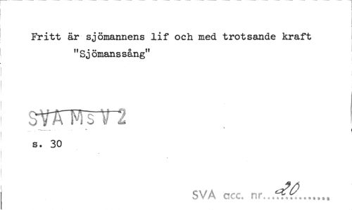 //// Fritt är sjömannens lif och med trotsande kraft "Sjömanssång" //// JOTstl //// s. 30 //// SVA ccc. ... ////