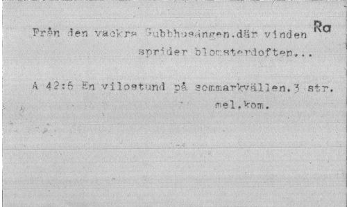 //// Ro //// Från -len vackra 'kibbhuf» imr«n.dä"" vinden ! sprider blomsterdoften.».. //// A 42:6 En vi1ostund på sommarkvällen.3•str. //// mel,kom. ////