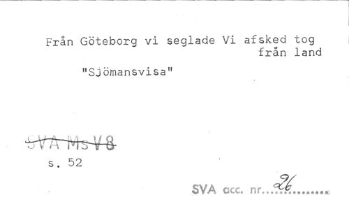 //// Från Göteborg vi seglade Vi afsked tog //// från land //// "Sjömansvisa" //// ^rrrM^M- //// s. 52 //// SVA ccc. ... ////