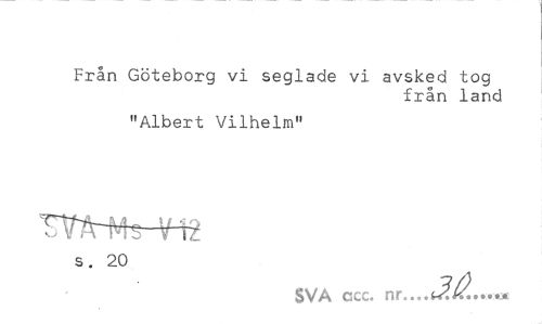 //// Från Göteborg vi seglade vi avsked tog //// från land //// "Albert Vilhelm" //// TWr //// s. 20 //// SVA ccc. nr... e • • • • ////