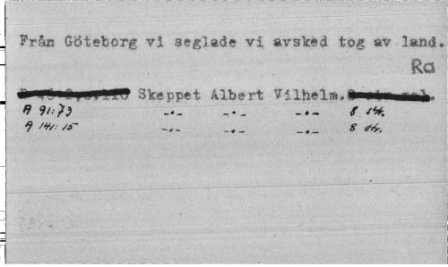 //// . Fr&n Göteborg vi seglade vi avslced tog av land. //// Ra ////