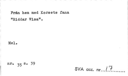 //// Prån hem med Korsets fana "Riddar Wisa". //// Mel. //// nr. s. 39 //// SVA acc. nr. ////