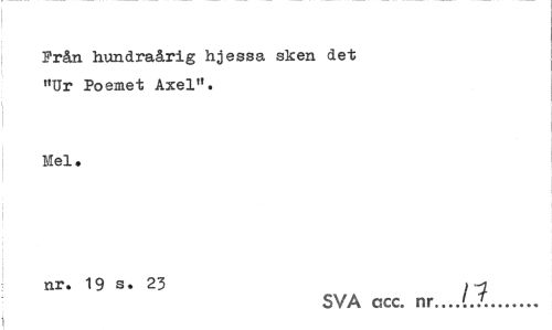 //// Från hundraårig hjessa sken det "Ur Poemet Axel". //// Mel. //// nr. 19 s. 23 . //// SVA ccc. nr...£..\... ////