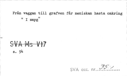 //// Från vaggan till grafven får neniskan hasta omkring //// II X " //// I smyg //// SV-A Ms V17 //// s. //// SVA gcc. nr...'VC... ////