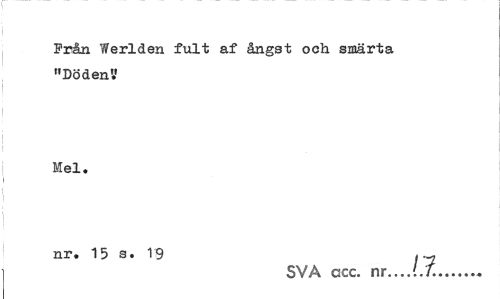 //// Från Werlden fult af ångat och smärta "Döden1.1 //// Mel. //// nr. 15 s. 19 , //// SVÅ ccc. nr...i.t... ////