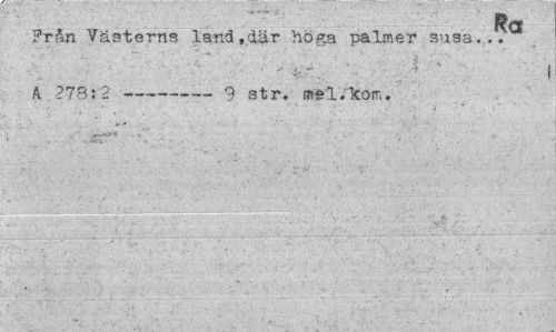 //// $ OÉ //// ?rån Västerns land,där höga palmer susa... A 218: 2---9 str. mel. kom. ////