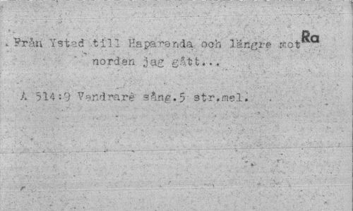 //// Ra //// k Ystad '.till Haparanda och längre rnot . //// norden gått... //// A 514:9 Vendraré sång.5 str.mel. //// r ////