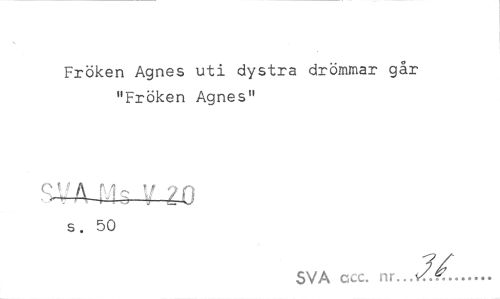 //// Fröken Agnes uti dystra drömmar går "Fröken Agnes" //// 'wA-fh V 20 //// s. 50 //// SVA ccc. nr Z trf™ ////