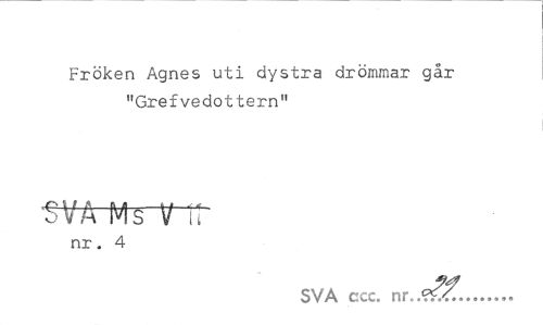 //// Fröken Agnes uti dystra drömmar går "Grefvedottern" //// SVA Ms V ii- //// nr. 4 //// SVA ccc. nr...Z.. trf™ ////