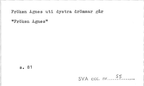 //// Fröken Agnes uti dystra drömmar går "Fröken Agnes" //// s. 81 //// SVA ccc. nr...Z trf™ ////