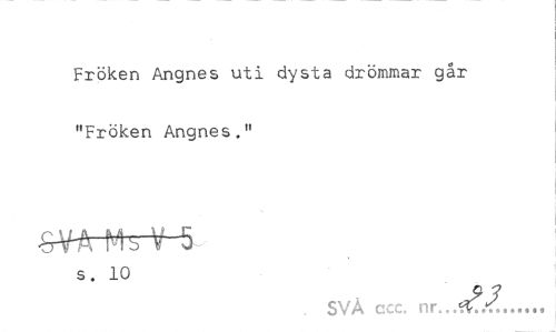 //// Fröken Angnes uti dysta drömmar går "Fröken Angnes." //// SVA MbV 5 //// s. 10 //// SVA ccc. nr... ////
