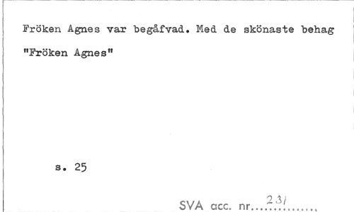 //// Fröken Agnes var begåfvad. Med de skönaste behag "Fröken Agnes" //// s. 25 //// SVA gcc. nr...?'V... ////