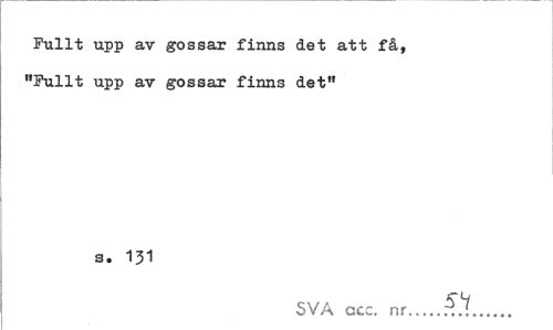 //// Fullt upp av gossar finns det att få, "Fullt upp av gossar finns det" //// s. 131 //// SVA ccc. nr... ////