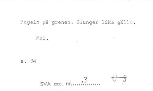 //// Fogeln på grenen, Sjunger lika gällt, Mel. //// s. 34 //// J i *¦» //// c 3 //// SVA ccc. nr...V... ////