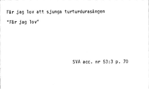 //// Får jag lov att sjunga turturdurasången "Får jag lov" //// SVA acc. nr 53:3 p. 70 ////