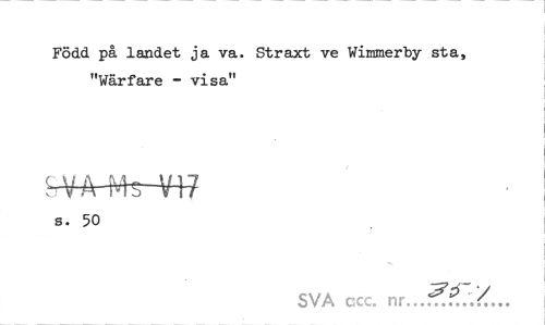 //// Född på landet ja va. Straxt ve Wimmerby sta, "Wärfare - visa" //// HfA-Ms-W //// s. 50 //// SVA ccc. nr... ////