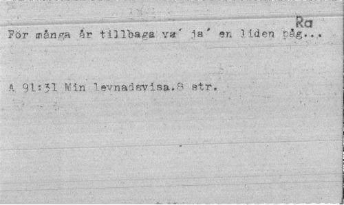 //// -.m ii" ,¦'¦:,i,',i,,,',,.,^'.,;; I , , ¦ ¦ vrv y n,;„,„¦ ,... ., w - //// För många år tillbaka va' .ia ' en liden påg..,. A 91*31 Min levnadsyisa*8 str. ////