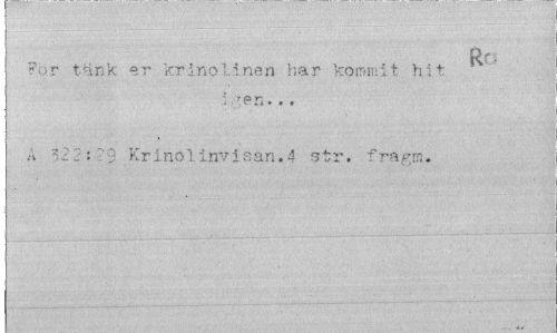//// R' • //// Por tänk er krinolinen har kommit hit //// ; -en. .. //// A 321':?'-" Krinolin*/i a an. 4 str, fra^m. ////
