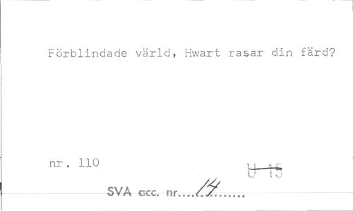 //// Förblindade värld, Hwart rasar din färd? //// nr . 110 t ^ « f- //// SVA ccc. nr... • • • « « « ////