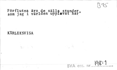 //// BW //// Förflutna äro de sälla stunder, som jag i världen upplevat har' //// KÄRLEKSVISA //// SVA ccc. nr..33.?.'.!... ////