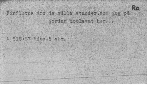 //// . • - ' „ . •-¦. ' - l • - ... .¦¦' //// Rq //// Förflutna nro ie sylla stunder,som jag //// j ordsn Upölevat ter... //// ¦( ¦ ¦ • -.'"'¦¦' , ¦ ; '-'.V '.¦>.., ' '» !i -3 > ' ' //// , ' ' , : .. ' ... ¦¦ ' ... ' :. . ' ¦ //// A 518:S7 Vi sa-. 5 str. ' ////