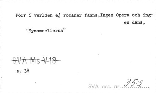 //// Förr i verlden ej romaner fanns,Ingen Opera och ingen dans, //// "Symamsellerna" s. 38 //// I //// SVA ccc. nr,..^^:^... ////
