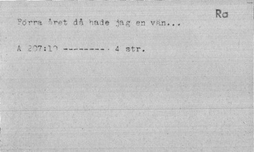//// R a //// Förra •*ret då hade jag' en vän... A 207:r> —---4 str. ////