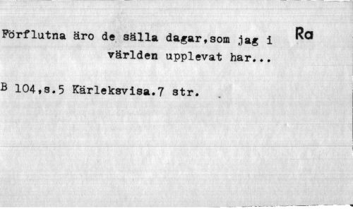 //// Ra //// Förflutna äro de sälla dagar,som jag i världen upplevat har,.. //// B 104,s.5 Kärleksvisa.7 str. ////